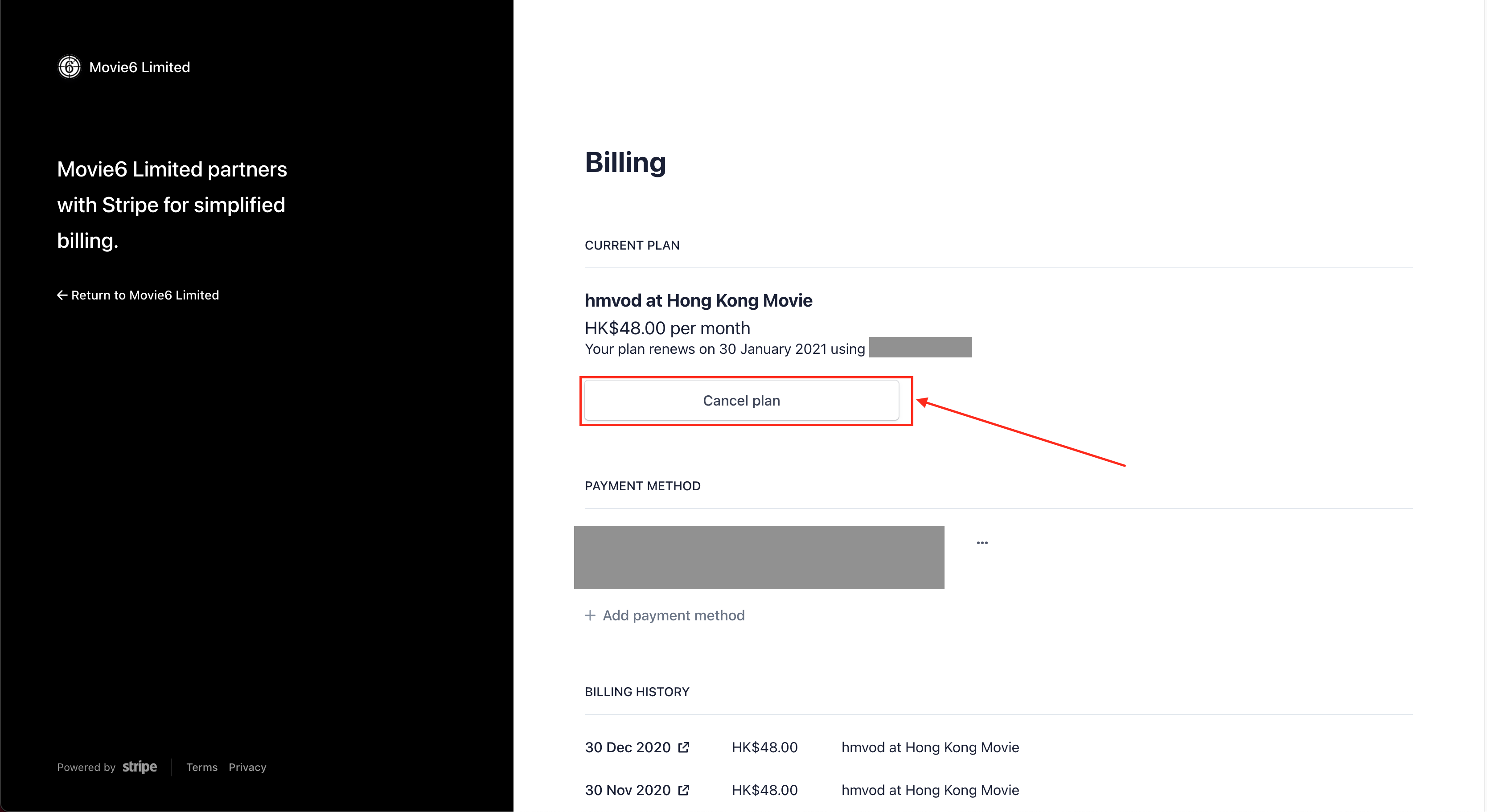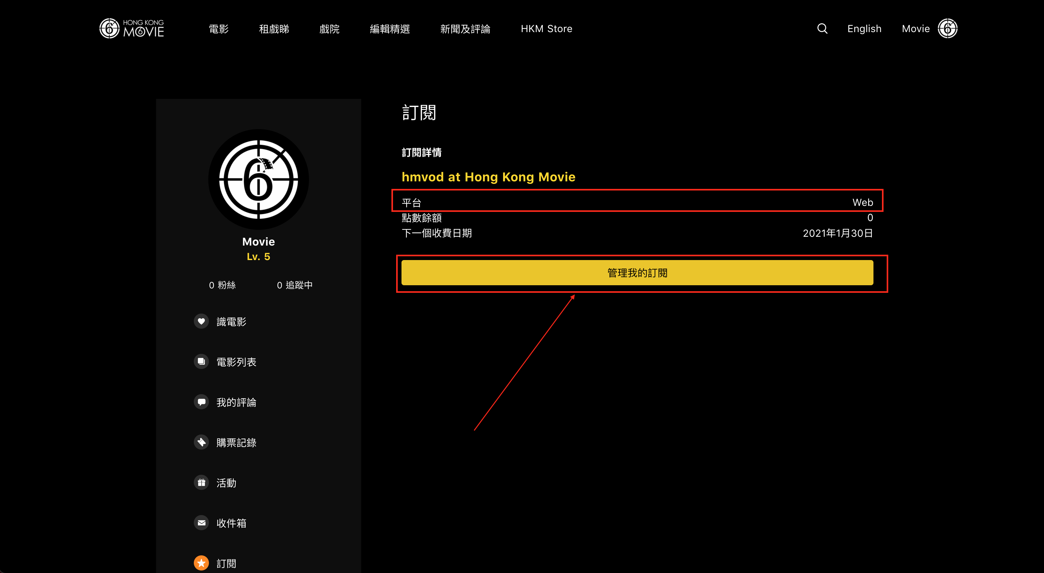 點選「管理我的訂閱」。如你的訂閱平台並不是顯示為「Web」,請查看本頁相關平台教學